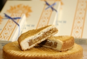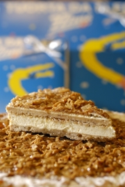 Ortsspezialität, Japonaisböden gefüllt mit leichter Haselnussbuttercreme, Biskuit leicht getränkt mit Kirsch